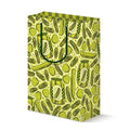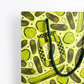 This playfully illustrated gift bag is a love letter to pickles, featuring a bold and briny pattern of jars, spears, and slices set against a punchy green checkerboard backdrop.