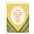 Funny pun card featuring a giant ear of corn with the words “This was the corniest card I could find.” A lighthearted card for birthdays, love, or just because.