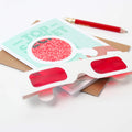 Hide a secret message that can ONLY be seen by looking through the decoder glasses (included with card)! This new Decoder Cards are SO much fun for all ages. Write lightly with a pencil, then peek through the red decoder glasses to reveal your hidden message! Instructions and glasses are enclosed.