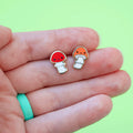This pair of hard enamel mushroom friend earrings are petite and classy enough for work, while still keeping things fun!