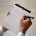 This notepad is very handy - the perfect size, and gorgeous paper. It is staple-bound on top, and features micro perforated, acid-free sheets that won't yellow over time. Fits inside the Mnemosyne A5 Project Holder + Notepad if you want to make a great impression in meetings, without being too flashy.