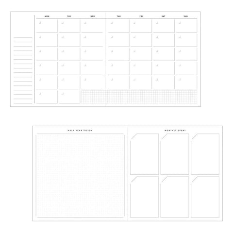 - Half Year Vision planning page with a dot grid layout