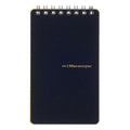 The Maruman Mnemosyne notebook features 50 sheets of 80gram paper. The sturdy resin cover, double ring binding, and unique, highly functional size and paper design makes for an unparalleled user experience. The black double wire top spiral binding matches the black plastic cover. The notebook features grey lines every 5mm, and every page is micro-perforated. Each sheet contains a blank margin at the top with a space for the date and title.