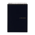 The Maruman Mnemosyne notebook features 50 sheets of 80gram paper. The sturdy resin cover, double ring binding, and unique, highly functional size and paper design makes for an unparalleled user experience. The black double wire top spiral binding matches the black plastic cover. The notebook features grey lines every 7mm, and every page is micro-perforated. Each sheet contains a blank margin at the top with a space for the date and title.