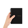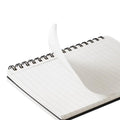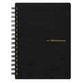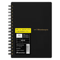 The Maruman Mnemosyne notebook features 70 sheets of 80gram paper. The sturdy resin cover, double ring binding, and unique, highly functional size and paper design makes for an unparalleled user experience. The black double wire side spiral binding matches the black plastic cover. The notebook features grey lines every 7mm, and every page is micro-perforated. Each sheet contains a blank margin at the top with a space for the date and title, and spaces to use as to do list checkboxes.