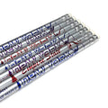 New York Pencils! These silver pencils are foil printed with New York, "The Empire State", facts about NY, and famous landmarks. They are foiled in blue, purple or red.