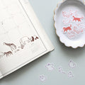 The “Ah là là” flake stickers feature sweet illustrations of animals and charming characters on the move. Printed on translucent washi paper, they have a soft, delicate look that layers beautifully in journals, planners, and letters. Line them up to create your own little parade across the page.