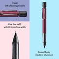 • Includes pencil lead refill LAMY M41 in size 0.5 mm and eraser LAMY Z18 with cleaning needle