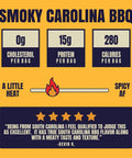 Louisville Vegan Jerky’s Smoky Carolina BBQ vegan jerky is marinated with sweet & tangy barbecue flavors. The seasonings are delicately balanced for an authentic Carolina BBQ flavor.