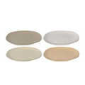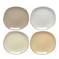• Set includes four plates in light brown, cream, off-white, and nectar
