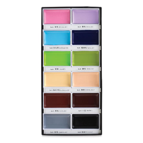These traditional Japanese solid watercolor sets are great for both professional artists and crafters. Each set features a collection of watercolor pans that are ideal for Etegami, sketches, illustrations, Sumi-e and more. The non-toxic, water-based paints are lightfast and ideal for sketching, illustration, sumi-e, cards, and more!
