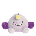 Blinky has a rounded, lavender-colored body, with a smiling face and rosy cheeks. Its distinct feature is a light-up antenna on its head, complete with a purple bulb and a fluffy yellow pom-pom, making it both cute and quirky. Blinky has soft purple fins that give it a gentle yet vibrant appearance.