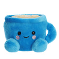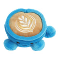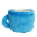 She is a plush coffee mug figure with a soft, blue body and a creamy top that resembles a freshly poured latte. Her eyes sparkle with a mix of wisdom and warmth, inviting all who meet her to share a moment of tranquility. Her gentle smile and relaxed posture make her the perfect companion for a peaceful coffee break.