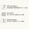 Inside, you’ll find 160 pages of OK Fools Paper - Japan’s finest writing paper known for its smooth texture, gentle ink absorption, and fountain pen compatibility. The subtle 2mm grid pattern includes helpful guides for dividing pages both vertically and horizontally, offering just the right balance of structure and creative freedom.
