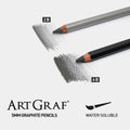 These high-quality artist pencils feature an extra-wide 5mm core of water-soluble graphite, offering rich, velvety smooth lines and an impressive tonal range. Available in 2B and 6B, each pencil provides deep, dark marks when dry and transforms into fluid, painterly washes with just a touch of water. The soft, responsive graphite is perfect for bold sketching, subtle shading, or layering tones in wet and dry techniques. ArtGraf pencils deliver versatile performance with a uniquely expressive touch.