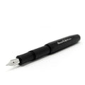 This pen features a screw-on cap for extra security, and a polished stainless-steel nib that was manufactured by Bock of Heidelberg. Each pen is made in Germany and has a Kaweco metal logo on the top of the cap.
