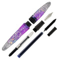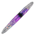 Named after the faceted gemstone, the BENU Briolette fountain pen has a glittering opulence that calls attention to itself. The cigar pen shape is faceted in a harlequin pattern around the entire barrel and cap. The dazzling resins are one-of-a-kind, infused with glittering, jewel-like sparkles. Twisting open the cap reveals a long, tapered grip section with a #5 size Schmidt stainless steel nib and plastic feed. Each Briolette fountain pen includes a standard international converter to fill with your choice of bottled ink.