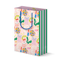 Just silly girly things cover this adorable gift bag; jewelry, bows, drinks and sweets. Of course there's also a disco ball!