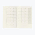 This undated monthly diary notebook features extra-thick Midori MD Paper, which is perfect for drawing with water-based inks, markers, and brush pens without bleedthrough. The gray cover has a linen-like texture, and the pages include 18 months of blank calendars and 12 pages of 2 mm graph paper. With a compact size, it's easy to carry with you wherever you go. The PUR binding ensures durability, making it a reliable choice for any task.