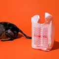 This bag is inspired by the iconic single-use Thank You bag, a culturally significant emblem that disrupted our shopping behaviors when it was phased out in favor of reducing plastic pollution.
