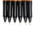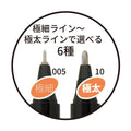 Ohto Graphic Liner rollerball drawing pens produce the same fine and consistent lines as fiber-tipped drawing pens but with a sturdy metal rollerball tip instead. This means that you'll be able to use every last drop of the waterproof, lightfast, archival-safe pigment ink without having to worry out about wearing out the pen tip over time.