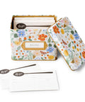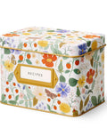 Bring a little cheer and charm to your kitchen with this floral Recipe Tin. Features a gold metallic interior, a gold-framed label on the front, and includes 24 recipe cards and 12 recipe dividers.
