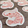 A cute vinyl sticker of a shrimp critter with the words "full of poop"