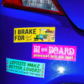 Life is worth living because of the surprise delight of abandoned furniture on city street corners. Practice safe street finding with this bumper sticker that tells those behind you that this vehicle makes stops for street finds. Happy hunting & gathering!