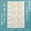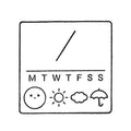A perfect addition to your notebook or bullet journal. This stamp lets you make a mark to note the date, day of the week, your mood, and the weather. Use it again and again!
