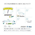 It features a rotating selection of the 7 day names and cute weather icons, so that you can easily add the day to your notes or create your own calendar. Use a water-based marker or pen to add colorful decorations to the designs, too—the stamp's black ink doesn't smear!