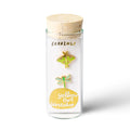 Presented in adorable glass vial packaging that is perfect for gifting, these unique earrings blend a sense of gold glamour with a charming twist. The mismatched yet perfectly paired cloisonné petite studs are gilded in 22 karat gold and have hypoallergenic posts. Each earring is .5" (1.3 cm) or slightly smaller.