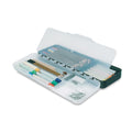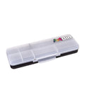 This two-tone Sketch Pac box has a transparent divider for twice the storage of a single box. Two larger compartments are in the base of the box while the other seven are in the clear lid section. The central divider panel keeps the supplies securely contained.