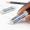 Natural rubber latex and silica grit eraser remove colored pencil and ink marks, including ballpoint, rollerball, and some markers. Environmentally friendly, produced with all-natural materials.