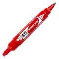 Permanent red marker with two durable tips – wide chisel tip and fine bullet tip. Works on a wide range of materials, including paper, metal, plastic, glass, vinyl, porcelain, leather, and wood. Two tips provide options for making thin or thick marks of smear-proof oil-based permanent ink. Durable tips made of polyester fiber (chisel tip) and acrylic fiber (fine tip) stay fresh and firm even after heavy use.