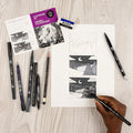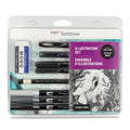 Tombow Illustration Set includes all the tools you need to create pen & ink drawings, sketches and illustrations. Contains instructional guide with helpful tips on basic drawing techniques, layering, value and composition. Features Dual Brush Pen art marker with flexible brush tip and fine tip in one. Set includes three Dual Brush Pens, two MONO Drawing Pens, Fudenosuke Brush Pen, MONO Twin Permanent Marker, MONO Drawing Pencil H and MONO Eraser.