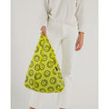 This best selling reusable bag is not just for the grocery store, it goes everywhere and hauls (practically) anything. Carry in your hand or over your shoulder. Holds 2–3 plastic grocery bags worth of stuff. Folds into a flat 5" × 5" pouch.