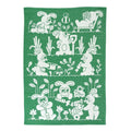 Fun and humorous, this design by Elliot Kruszynski comes in a colorful green and features a collection of garden rabbits! We especially love the adorable detail of the bonus bunny on the towel's tag.