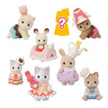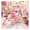 Character possibilities include: Latte Cat Baby and fork wand, Latte Cat Cradled Baby and cream hat, Walnut Squirrel Baby (crawling) and cake hat, Chocolate Rabbit Cradled Baby and cake roll car with ears, Woolly Alpaca Baby (crawling) and cupcake hat, Milk Rabbit Baby and teapot hat, Striped Cat Baby (sitting) and cup hat, Secret