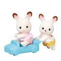 Th set includes the Chocolate Rabbit twins figures (one sitting and one crawling) and a ride-on toy. The figures can be posed by moving their heads. The sitting Chocolate Rabbit Twin can fit inside the ride-on toy.