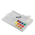 This 12-Color Set includes one each of silver, light gold, deep gold, copper, fluorescent yellow, fluorescent orange, fluorescent red, fluorescent blue, fluorescent green, fluorescent rose, fluorescent magenta and fluorescent violet colors, one dabbing sponge and one 4ml barrel small tip water brush. The snap lid acts as a palette for mixing.