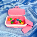 Carry your meds and vitamins in style with this pink pill case. Two convenient, removable dividers on the inside create 3 separate compartments. Shaped like an adorable mini suitcase. Waterproof + smell proof!