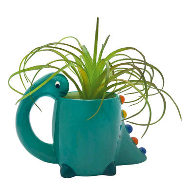A desk accessory so adorable, you'll be roaring with delight! This Dino can bu used as a planter, or used as a pen cup! Comes with a pre-drilled hole found at the bottom for easy garden-tending.