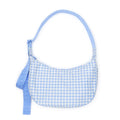 Medium Nylon Crescent Bag: Light Blue Gingham