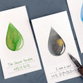 With just a light application, ink is absorbed only within the droplet-shaped area of the these cards, while the surrounding area remains untouched. A special coating around the droplet ensures a clean, precise display of the ink’s true color—perfect for color testing and presentation. There’s no need to use a lot of ink—just a gentle, even spread is enough for beautiful results.