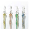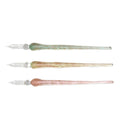 These elegant glass dip pens let you enjoy your favorite inks with minimal cleanup. The handmade glass nib writes smoothly with a wide range of inks, and rinses clean easily when you’re ready to switch colors. The clear glass handle features flowing color swirls and shimmering gold glitter accents.