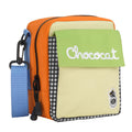Built from durable tan, orange, and green textiles that coordinate with the 600 instant camera, it prominently displays the Chococat name logo and checkered accents. The case has two zippered compartments: one large main compartment lined and sized to fit a 600-style instant camera (many other styles will also fit), and a smaller front compartment perfect for film or other goodies.