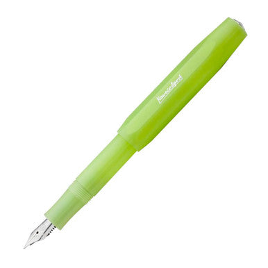 Made in Germany, this high-quality plastic pen features a screw-on cap for extra security, gold-colored stainless steel nib with an iridium tip, and a metal Kaweco logo on the cap tip.