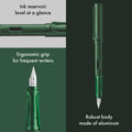 • Lightweight fountain pen with polished steel nib and ergonomic grip made of high-quality transparent plastic