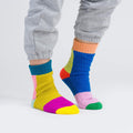 These unisex fleece-lined knit slipper socks are the best of both worlds! The easy fit of socks meets the plush comfort of house slippers. Mismatched, unexpected color combos on each foot will keep you cozy (and bright) indoors.