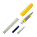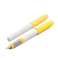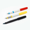 Originally released as a dip pen around the year 1900, the Perkeo has been revived as a stylish entry-level fountain pen perfect for students and beginners. It carries on Kaweco's hallmark combination of classy and offbeat styling elements with its octagonal cap, 16-sided barrel, and funky two-tone color schemes. Its triangular grip section makes it easy to hold at the best angle for smooth ink flow and effortless writing. The transparent threaded section where the grip meets the barrel acts as a hidden ink window, letting you check the ink level without fully unscrewing the barrel.